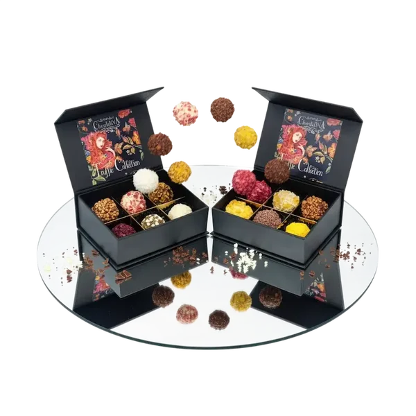- Ambachtelijk handwerk: Elke truffel en bonbon wordt met de hand gemaakt door onze ervaren chocolatiers.
