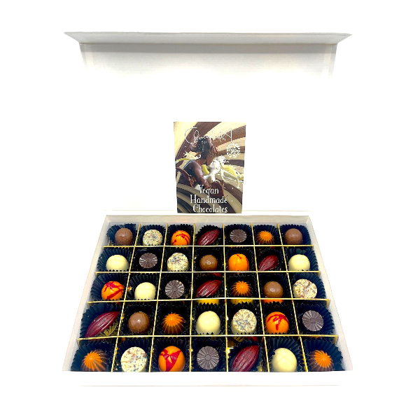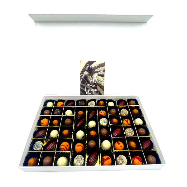- 24 stuks in een assortiment van onze vegan bonbons