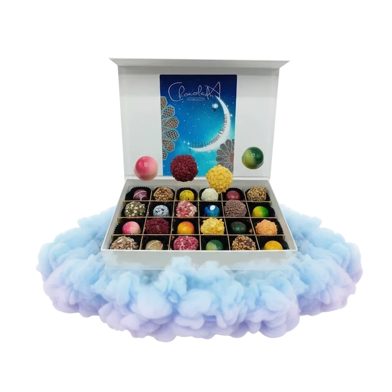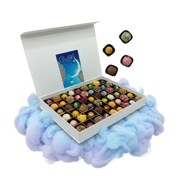 - Luxe magneetbox met ambachtelijke truffels & pralines (Halal & alcoholvrij) in de door jou gekozen maat.