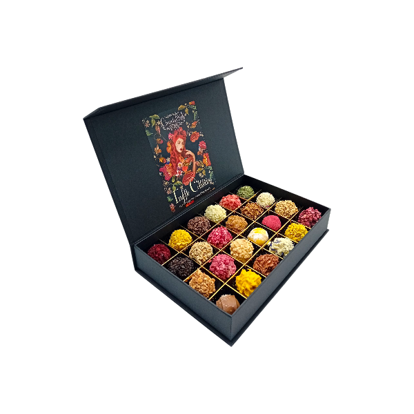 Wacht niet langer en bestel dit doosje vol heerlijke handgemaakte chocolade truffels en bonbons. Een exclusieve smaakbeleving wacht op je!