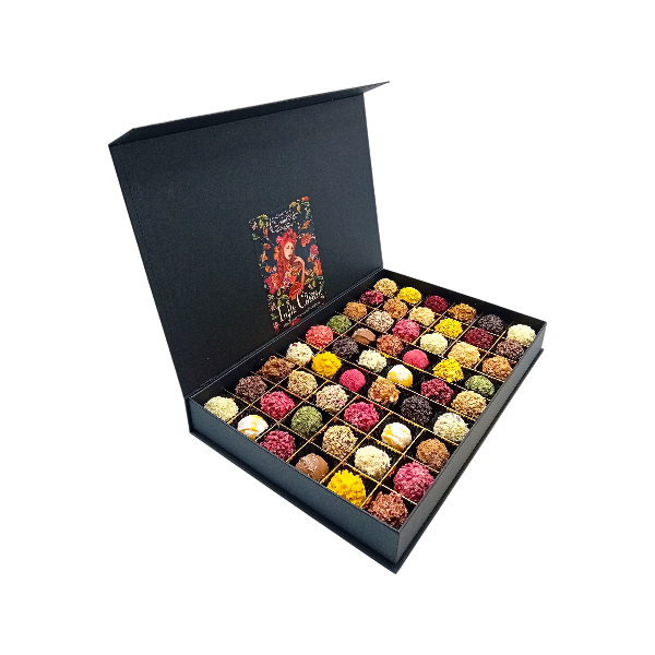 Geniet van een selectie van onze beroemde handgemaakte chocolade truffels en bonbons in deze luxe grote doos. Perfect als cadeau of om jezelf te verwennen met een exclusieve chocolade-ervaring.