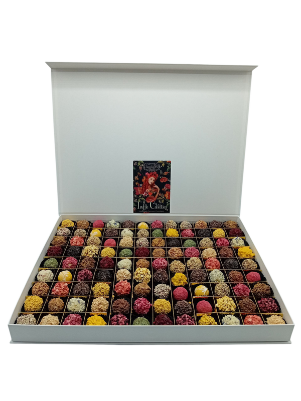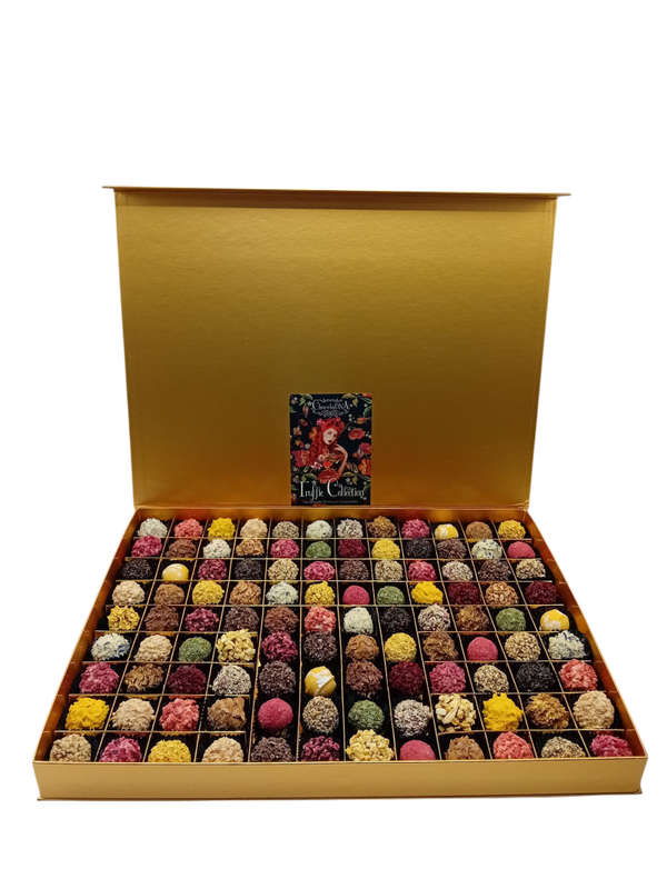 Geniet van een selectie van onze beroemde handgemaakte chocolade truffels en bonbons in deze luxe mega grote doos. Perfect als cadeau of om jezelf te verwennen met een exclusieve chocolade-ervaring.