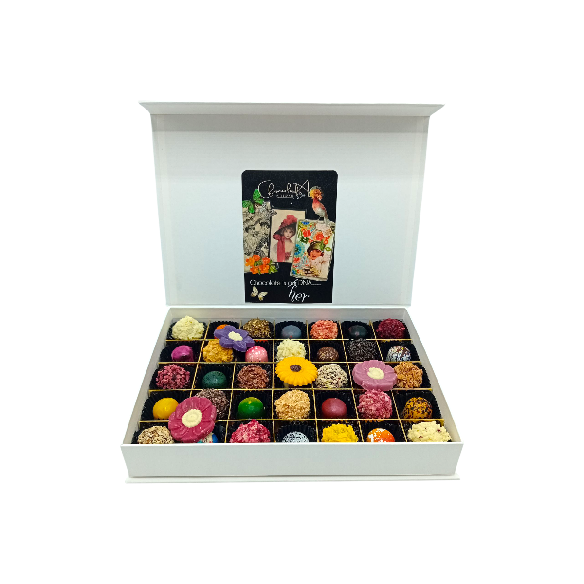 Moeders Chocolade Truffels & Pralines met Poëziealbum -groot (35stuks) | Cadeau voor moeders| Chocoseum