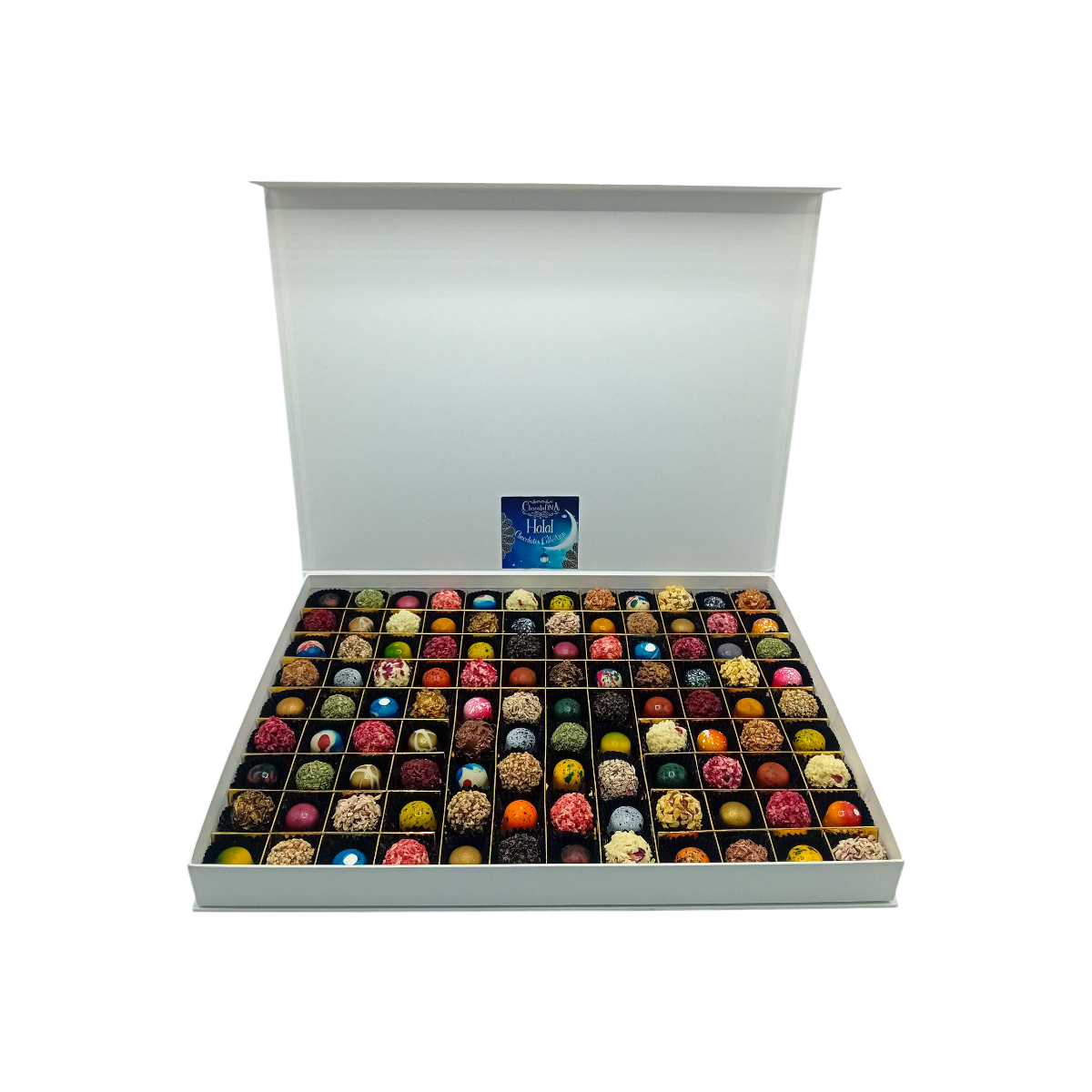 - Luxe magneetbox met 108 ambachtelijke truffels & pralines(Halal & alcoholvrij)