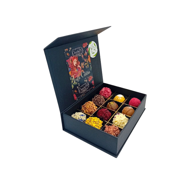 - Luxe magneetbox met 12 ambachtelijke truffels & pralines(Alcoholvrij)