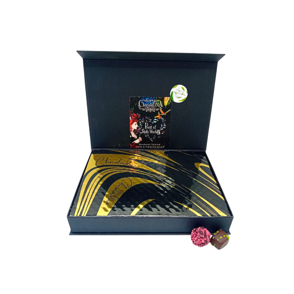 De inhoud is een bijzondere samenwerking tussen Gerben Umag van Geruba en Mark Vaneker van ChocolaDNA. Het beste van beide werelden, een topgeschenk voor iedere chocoholic en levensgenieter en bovendien nergens anders verkrijgbaar.